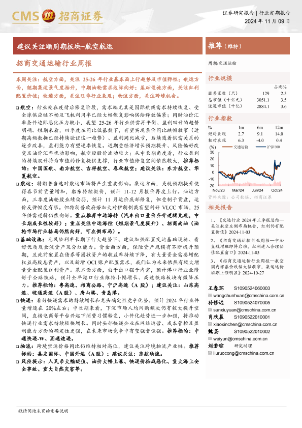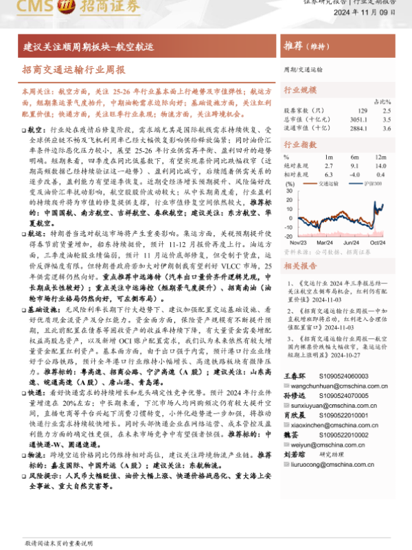 【海通证券】【20241109】招商交通运输行业周报:建议关注顺周期板块-15页