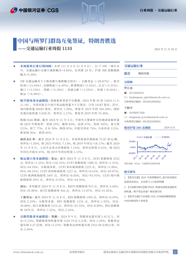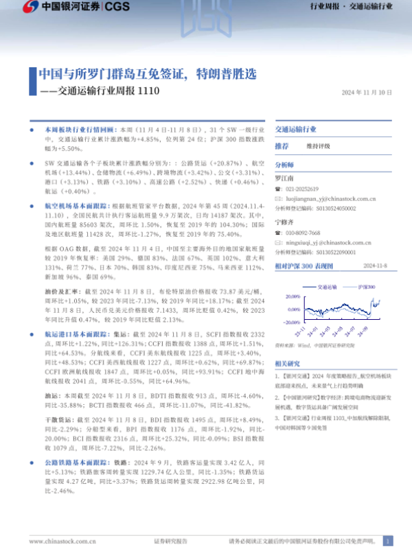 【银河证券】【20241110】交通运输行业周报:中国与所罗门群岛互免签证,特朗普胜选-21页