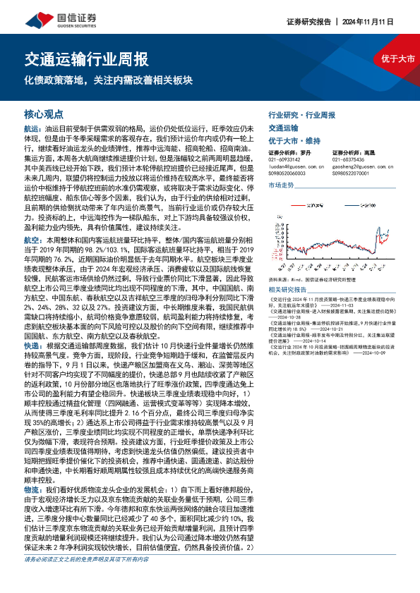 【国信证券】【20241111】交通运输行业周报:化债政策落地,关注内需改善相关板块-23页