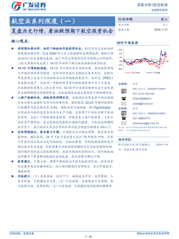【广发证券】【20241121】复盘历史行情,看油跌预期下航空投资机会-33页