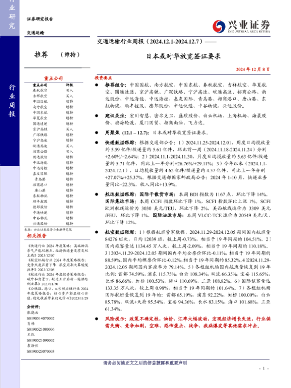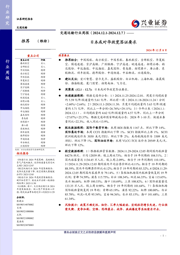 【兴业证券】【20241208】交通运输行业周报:日本或对华放宽签证要求-19页
