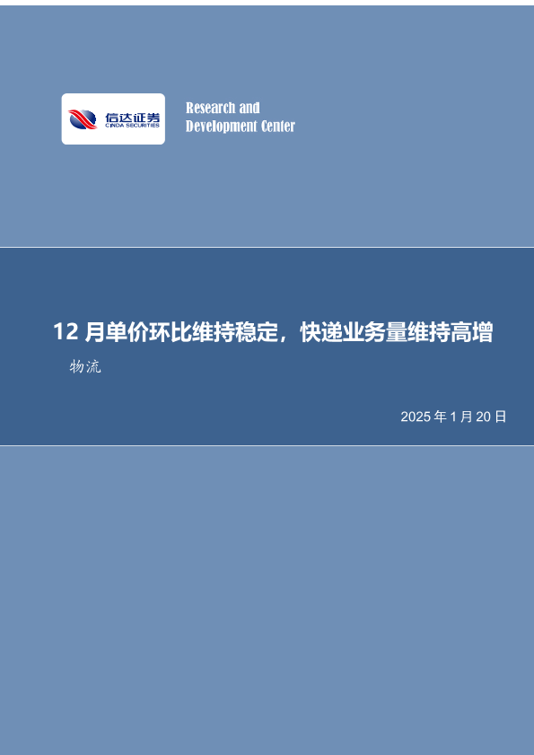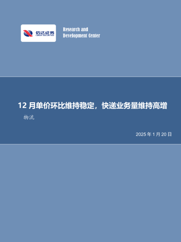 【信达证券】【20250120】快递行业月度专题:12月单价环比维持稳定,快递业务量维持高增-11页