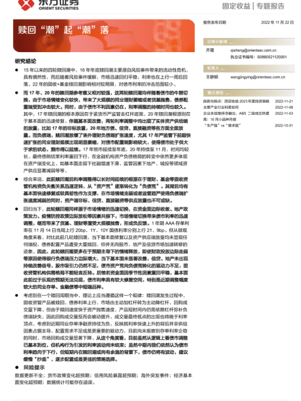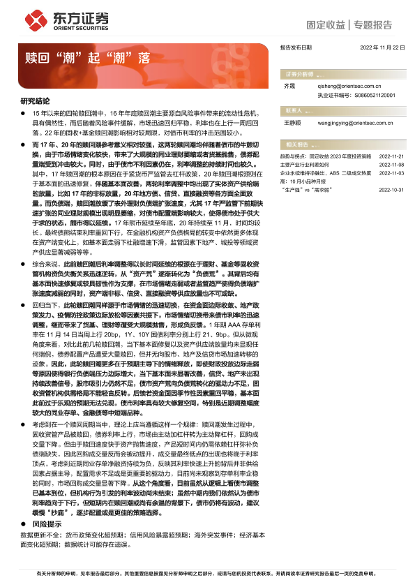【东方证券】【20221122】固定收益专题报告:赎回“潮”起“潮”落-20页