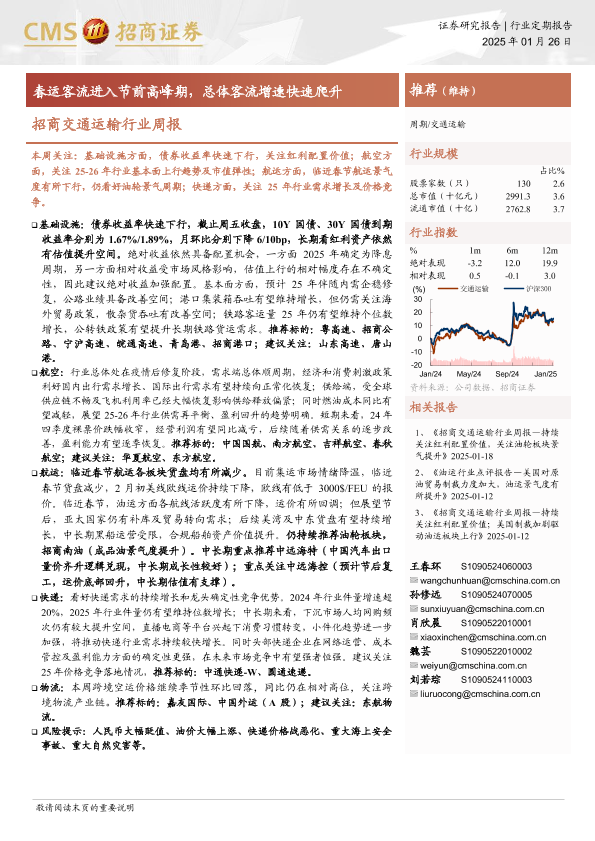 【海通证券】【20250126】招商交通运输行业周报:春运客流进入节前高峰期,总体客流增速快速爬升-16页