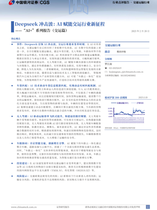 【银河证券】【20250220】AI+系列报告(交运篇):Deepseek冲击波:AI赋能交运行业新征程-11页