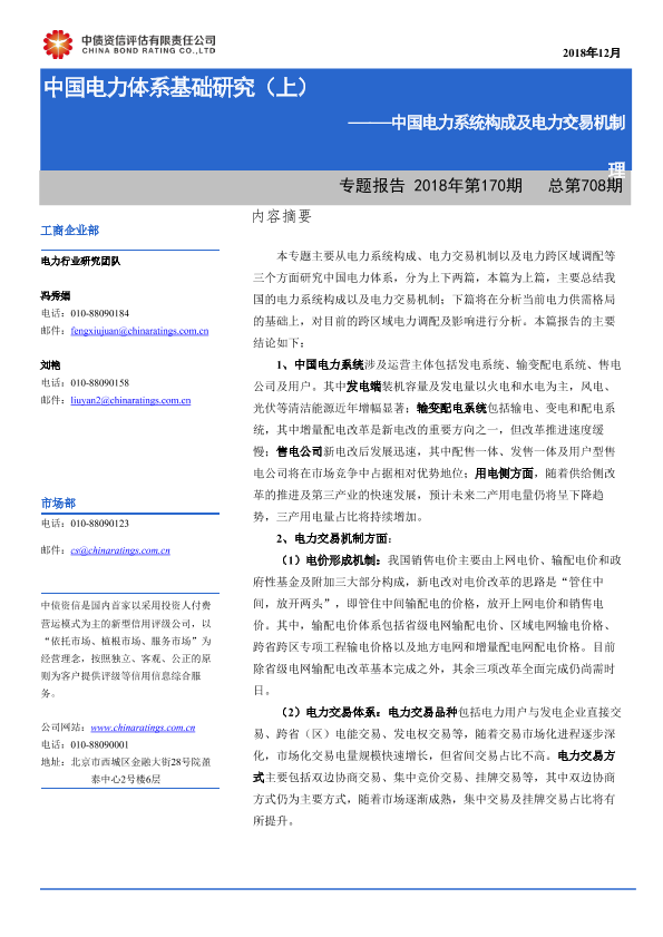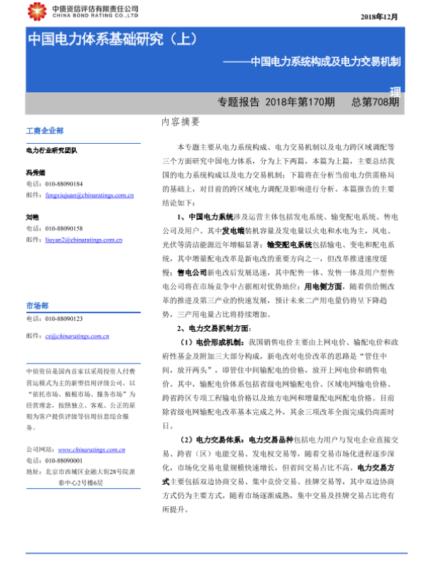【中债资信】【201812】中国电力体系基础研究(上):中国电力系统构成及电力交易机制-14页