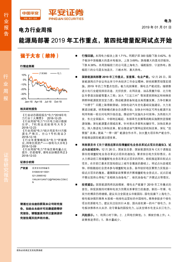 【平安证券】【20190101】电力行业周报:能源局部署2019年工作重点,第四批增量配网试点开始-8页