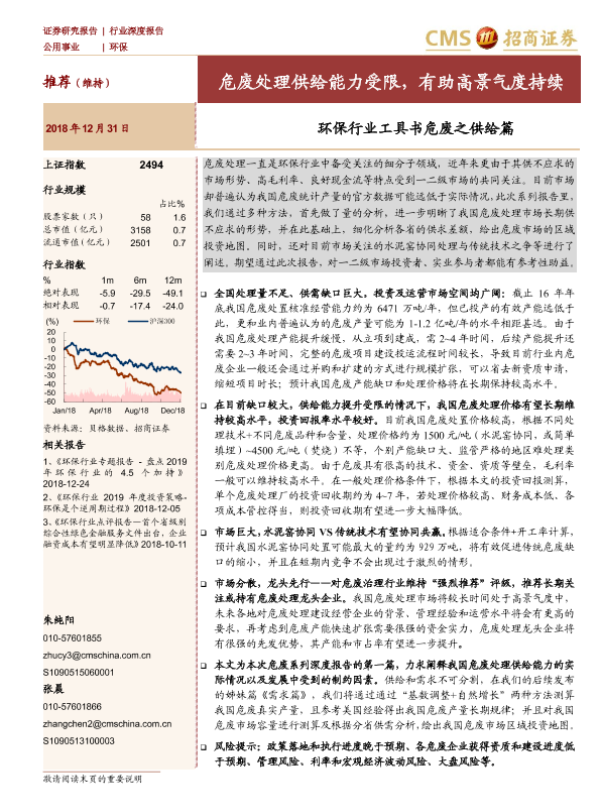 【海通证券】【20181231】环保行业工具书危废之供给篇:危废处理供给能力受限,有助高景气度持续-23页