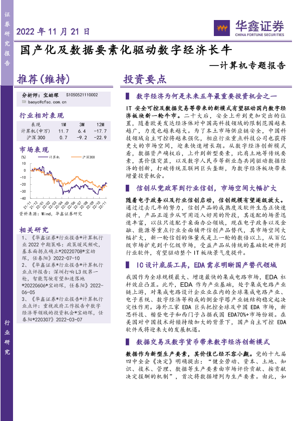 【华鑫证券】【20221121】国产化及数据要素化驱动数字经济长牛-26页