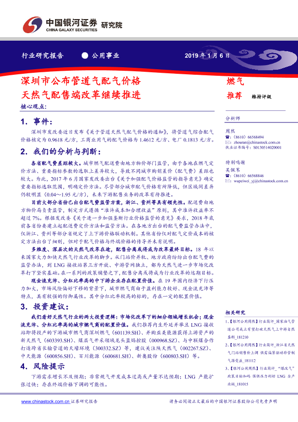 【银河证券】【20190106】深圳市公布管道气配气价格 天然气配售端改革继续推进-3页