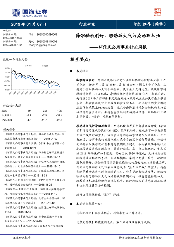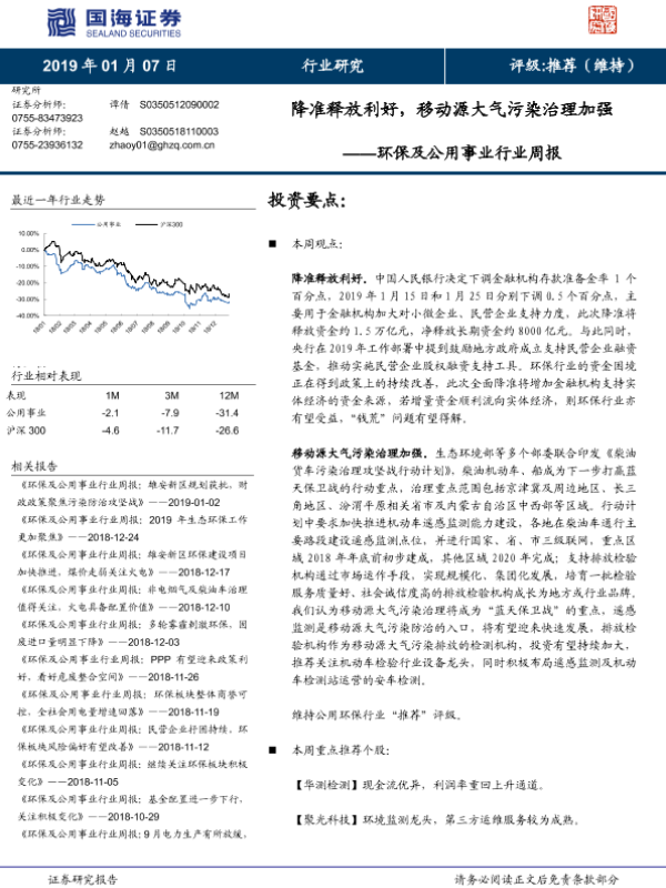【国海证券】【20190107】环保及公用事业行业周报:降准释放利好,移动源大气污染治理加强-10页