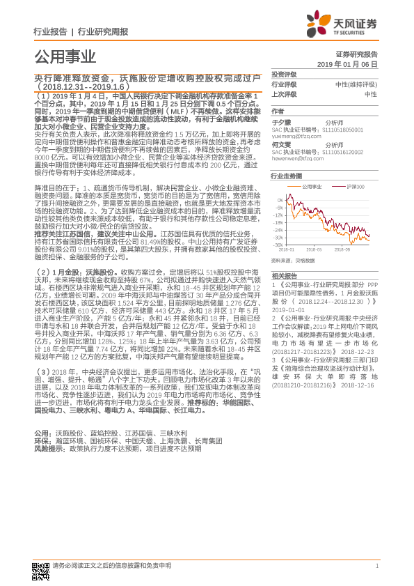 【天风证券】【20190106】央行降准释放资金,沃施股份定增收购控股权完成过户-17页