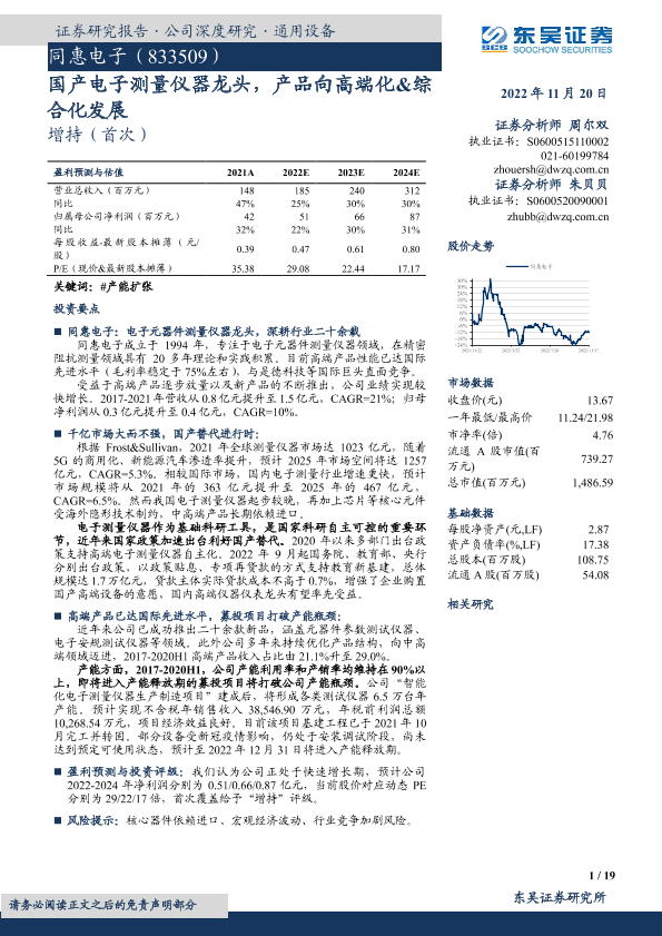 【东吴证券】【20221120】国产电子测量仪器龙头,产品向高端化&综合化发展-19页