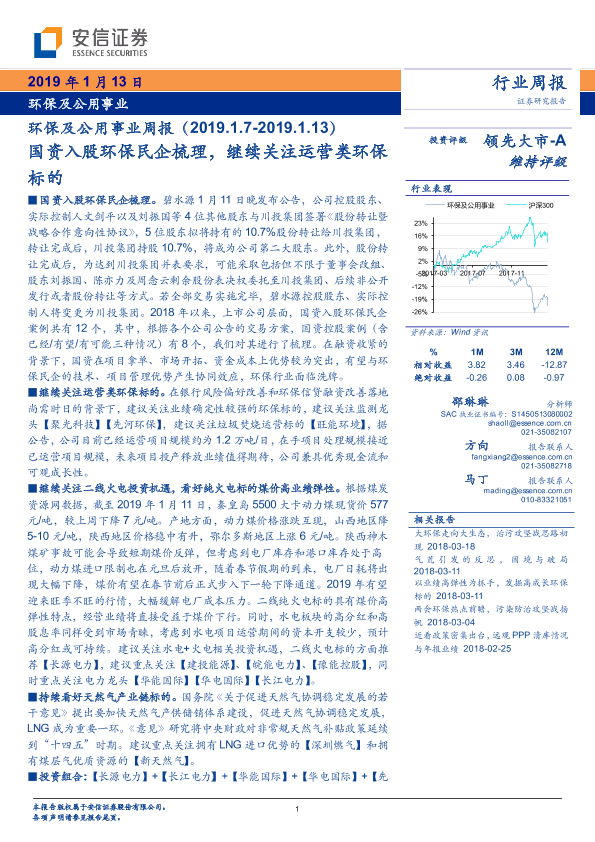 【安信证券】【20190113】环保及公用事业周报:国资入股环保民企梳理,继续关注运营类环保标的-18页