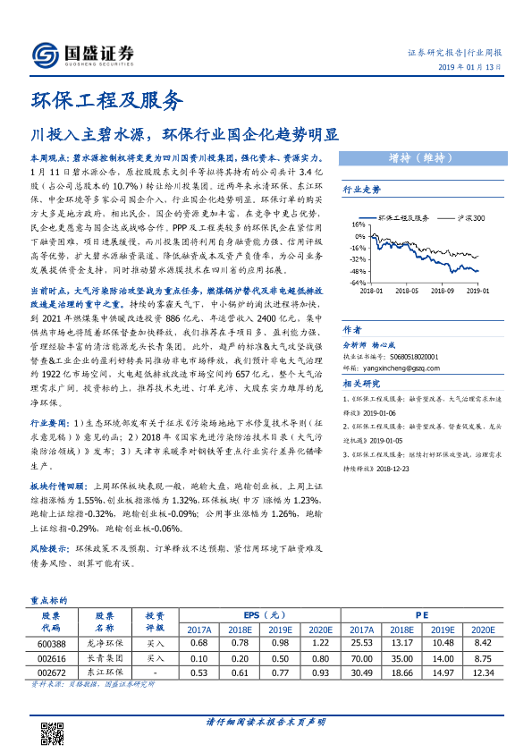 【国盛证券】【20190113】环保工程及服务行业周报:川投入主碧水源,环保行业国企化趋势明显-9页