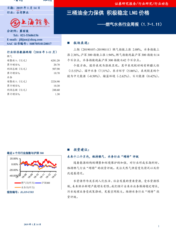 【上海证券】【20190114】燃气水务行业周报:三桶油全力保供 积极稳定LNG价格-7页