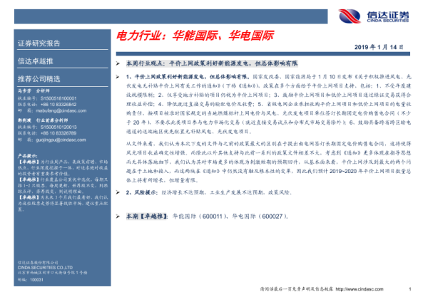 【信达证券】【20190114】电力行业:华能国际、华电国际-5页