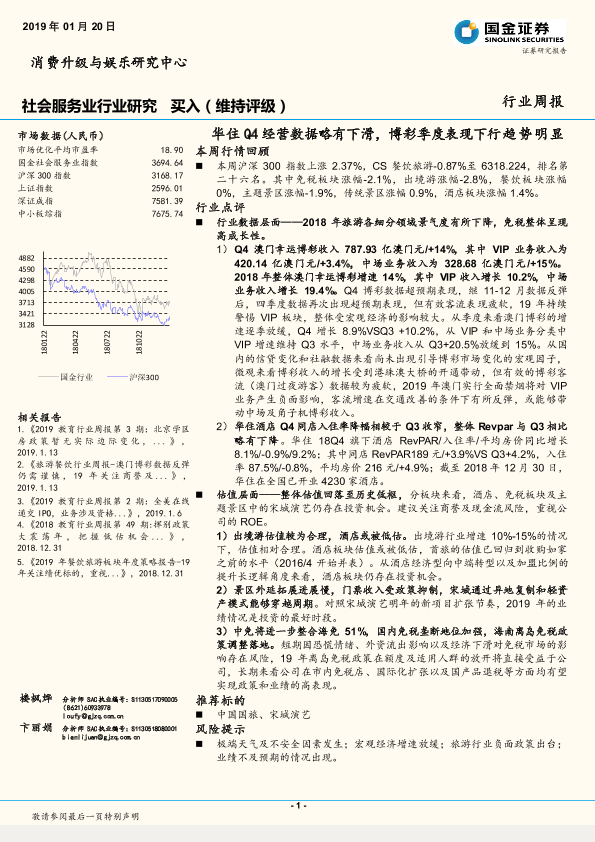 【国金证券】【20190120】社会服务业行业研究:华住Q4经营数据略有下滑,博彩季度表现下行趋势明显-11页