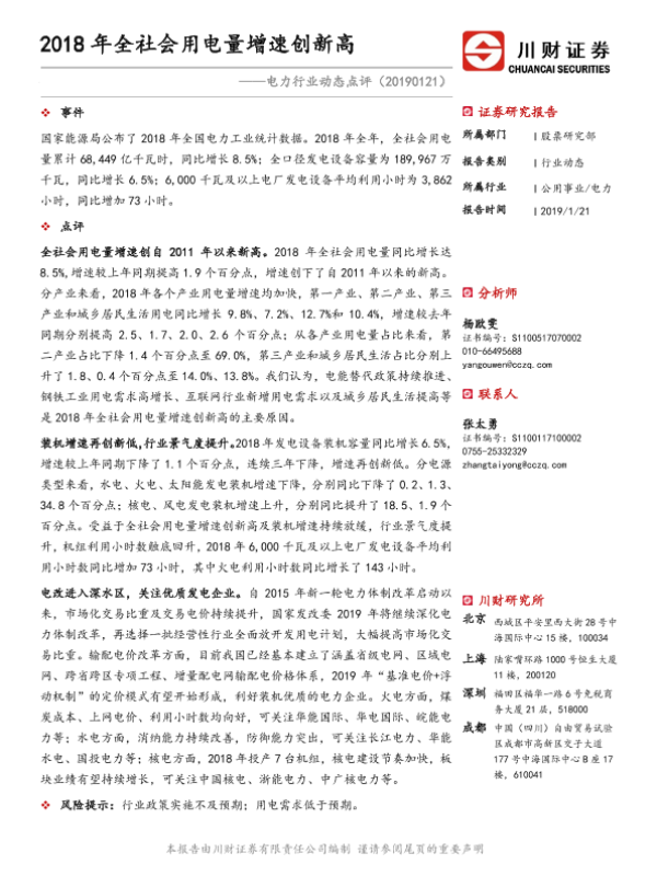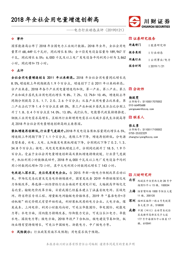 【川财证券】【20190121】2018年全社会用电量增速创新高-2页