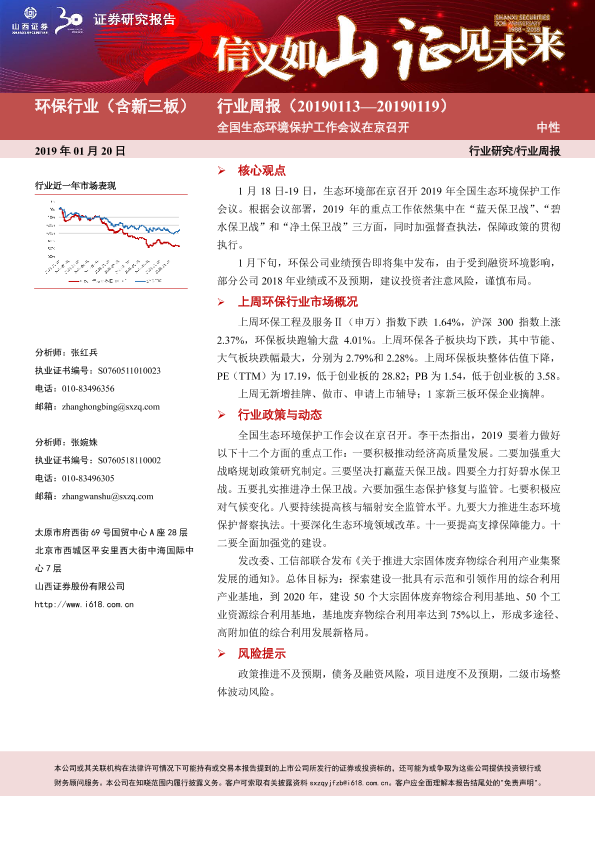 【山西证券】【20190120】环保行业(含新三板)行业周报:全国生态环境保护工作会议在京召开-13页