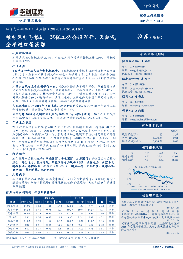 【华创证券】【20190120】环保与公用事业行业周报:核电风电再推进,环保工作会议召开,天然气全年进口量高增-44页