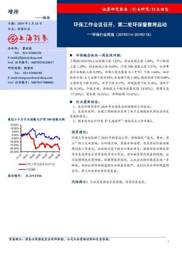 【上海证券】【20190124】环保行业周报:环保工作会议召开,第二轮环保督察将启动-8页