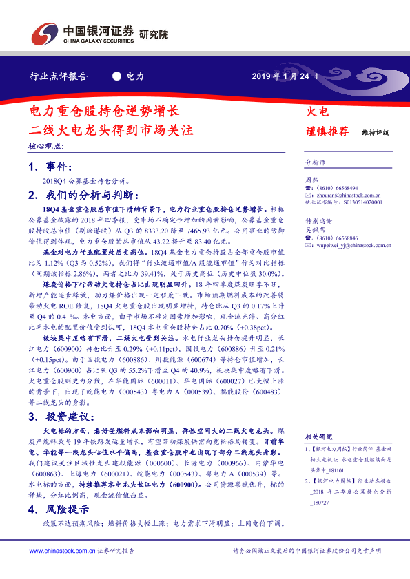 【银河证券】【20190124】电力重仓股持仓逆势增长 二线火电龙头得到市场关注-5页