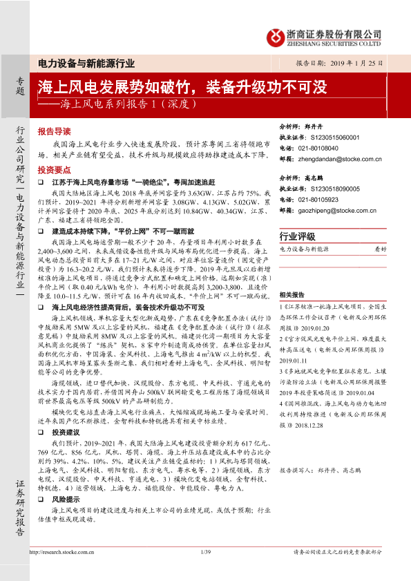 【浙商证券】【20190125】海上风电发展势如破竹,装备升级功不可没-39页