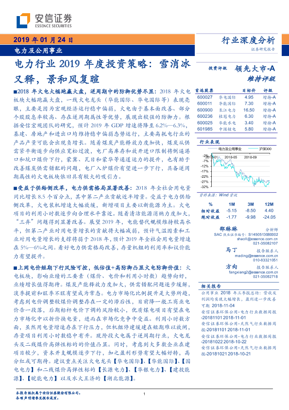 【安信证券】【20190124】电力行业2019年度投资策略:雪消冰又释,景和风复暄-38页