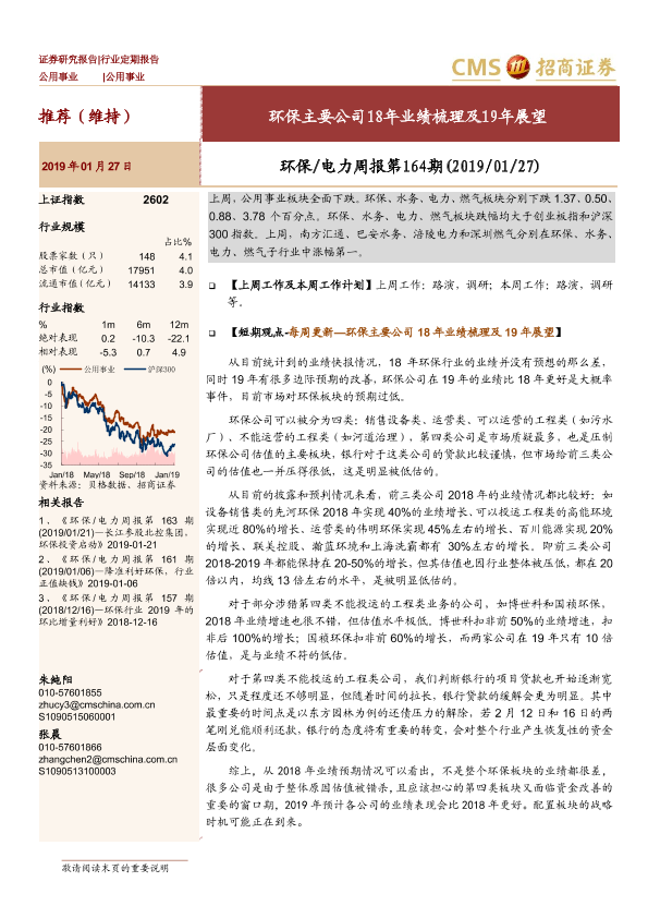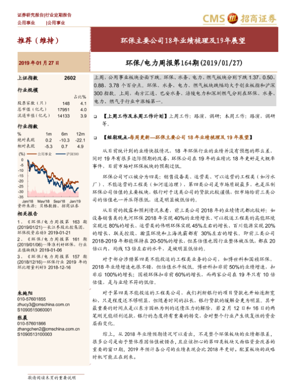 【海通证券】【20190127】环保电力周报第164期:环保主要公司18年业绩梳理及19年展望-27页