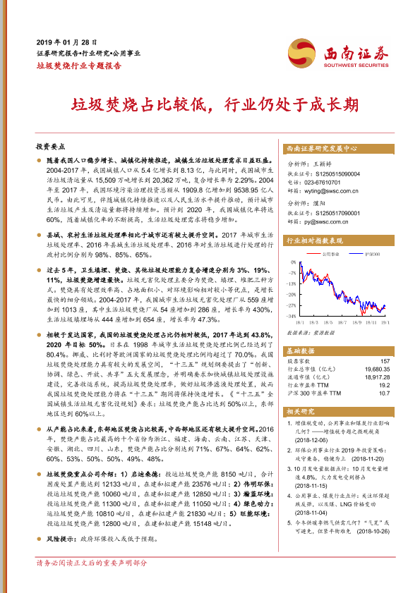 【西南证券】【20190128】垃圾焚烧行业专题报告:垃圾焚烧占比较低,行业仍处于成长期-26页