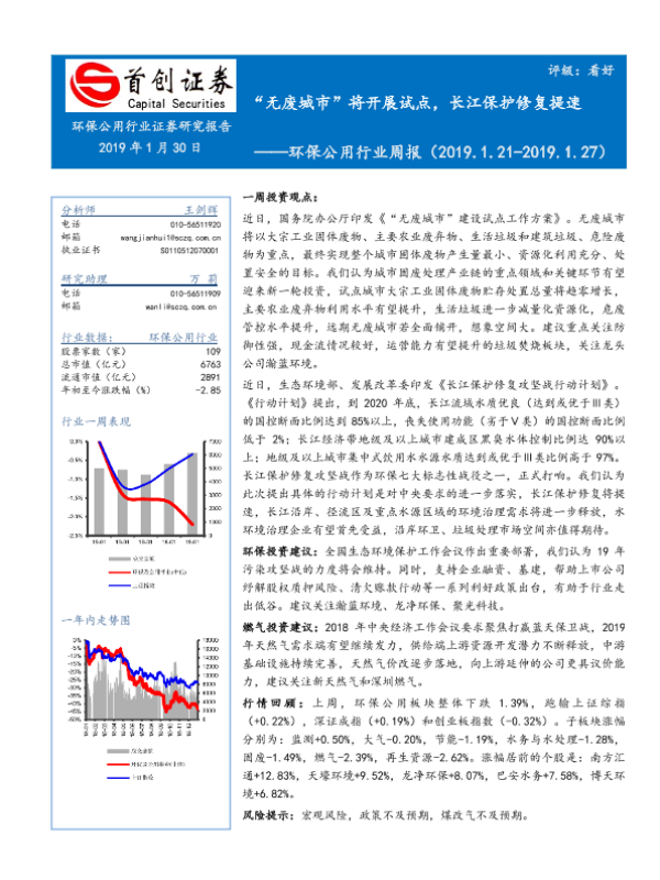 【首创证券】【20190130】环保公用行业周报:“无废城市”将开展试点,长江保护修复提速-15页
