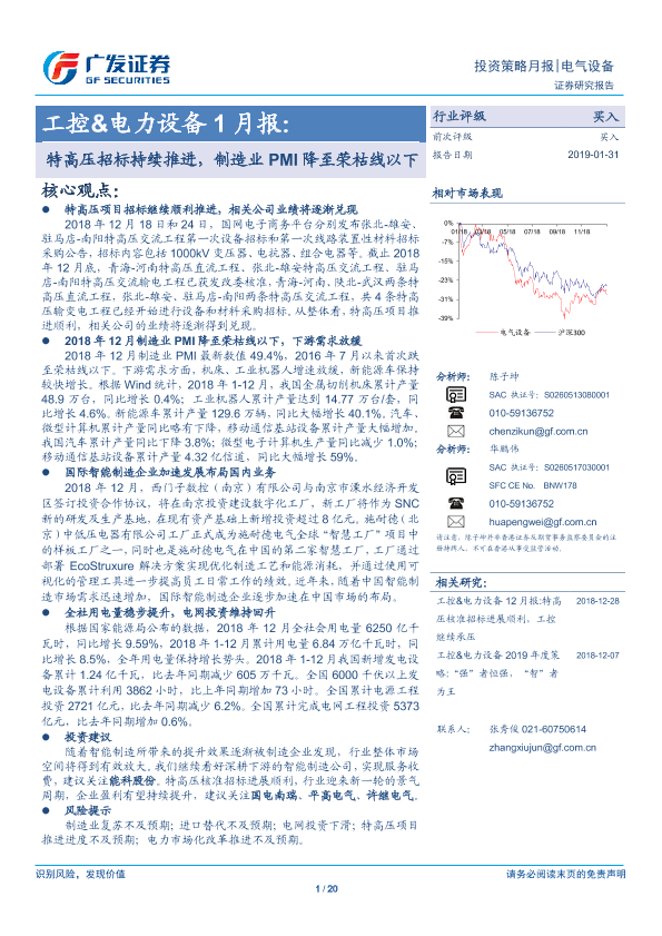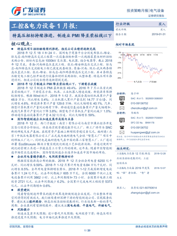 【广发证券】【20190131】工控&电力设备1月:特高压招标持续推进,制造业PMI降至荣枯线以下-20页