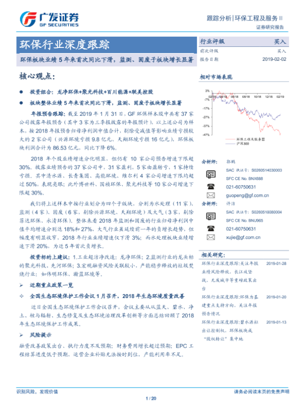 【广发证券】【20190202】环保板块业绩5年来首次同比下滑,监测、固废子板块增长显著-20页