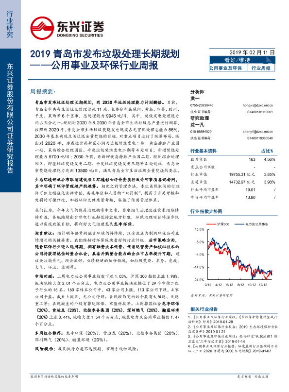 【东兴证券】【20190211】2019青岛市发布垃圾处理长期规划-6页