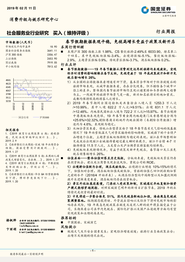 【国金证券】【20190211】社会服务业周报:春节假期数据表现平稳,免税高增长受益于政策及新开店-16页