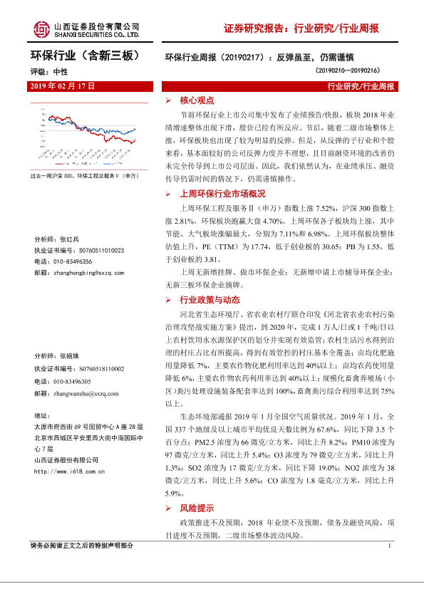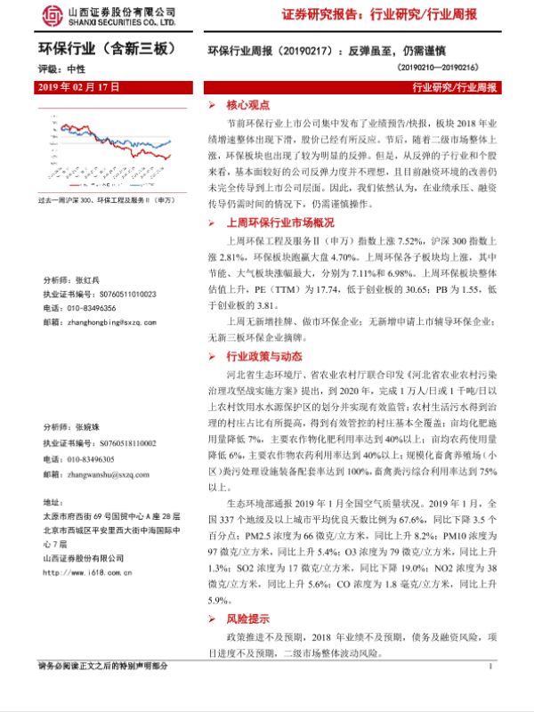 【山西证券】【20190217】环保行业周报:反弹虽至,仍需谨慎-12页