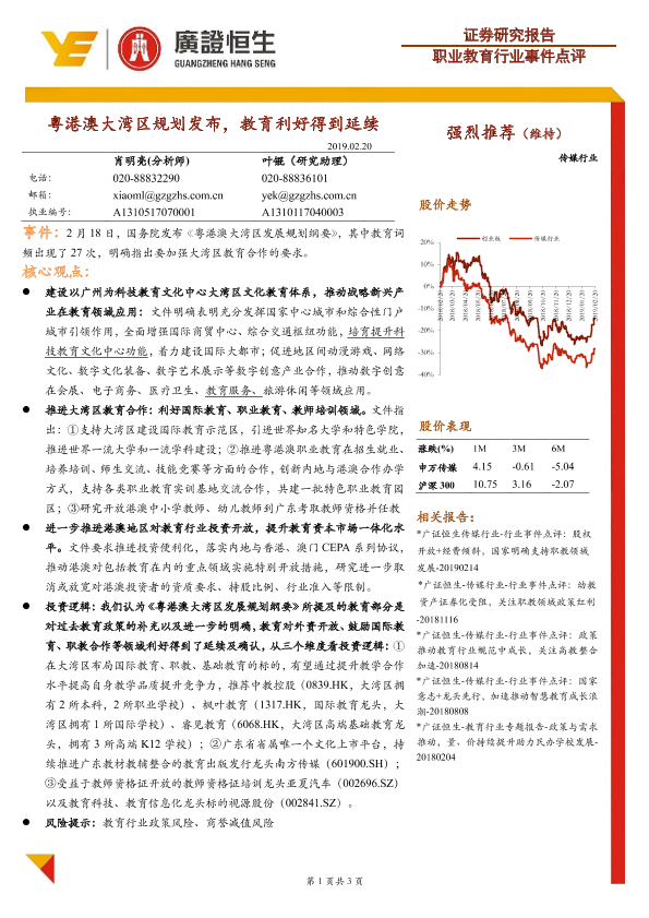 【广证恒生】【20190220】职业教育行业事件点评:粤港澳大湾区规划发布,教育利好得到延续-3页