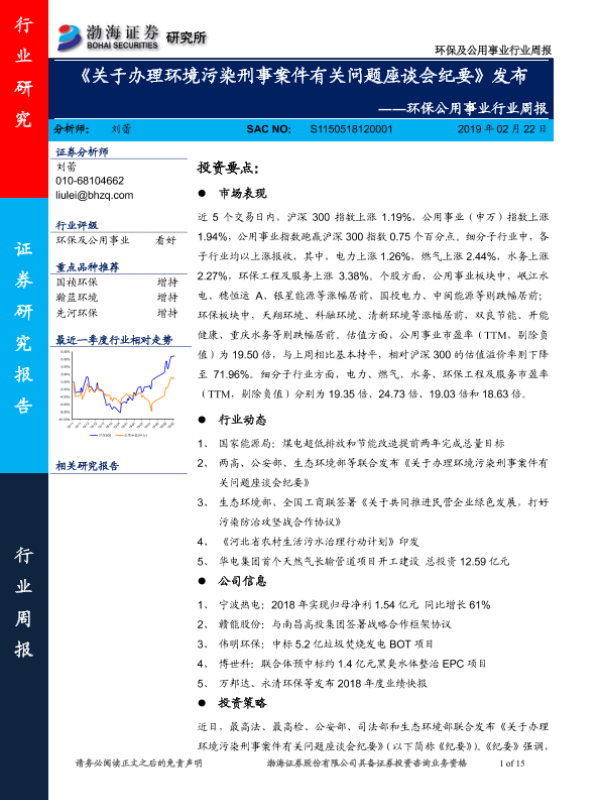 【渤海证券】【20190222】关于办理环境污染刑事案件有关问题座谈会纪要发布-15页