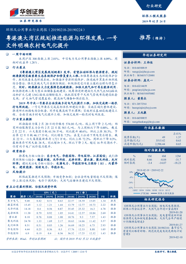【华创证券】【20190224】环保及公用事业行业周报:粤港澳大湾区规划推进能源与环保发展,一号文件明确农村电气化提升-33页