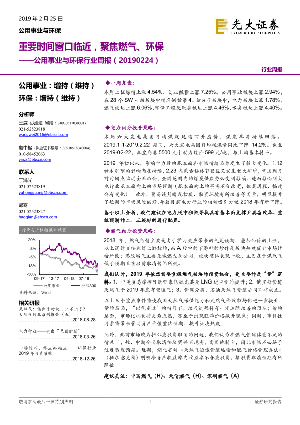 【光大证券】【20190225】公用事业与环保行业周报:重要时间窗口临近,聚焦燃气、环保-22页