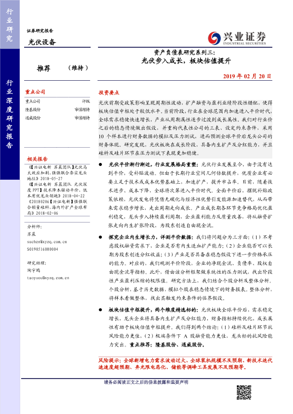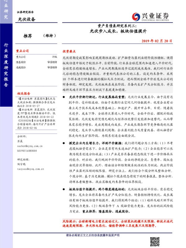 【兴业证券】【20190220】光伏设备行业深度报告:光伏步入成长,板块估值提升-15页