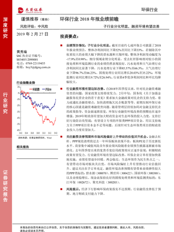 【东莞证券】【20190227】环保行业2018年报业绩前瞻:子行业分化明显,融资环境有望改善-10页