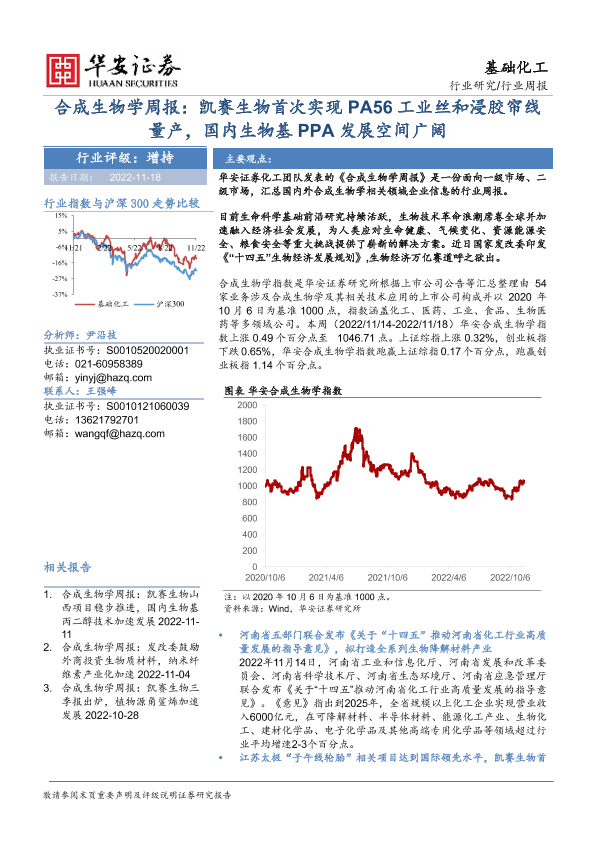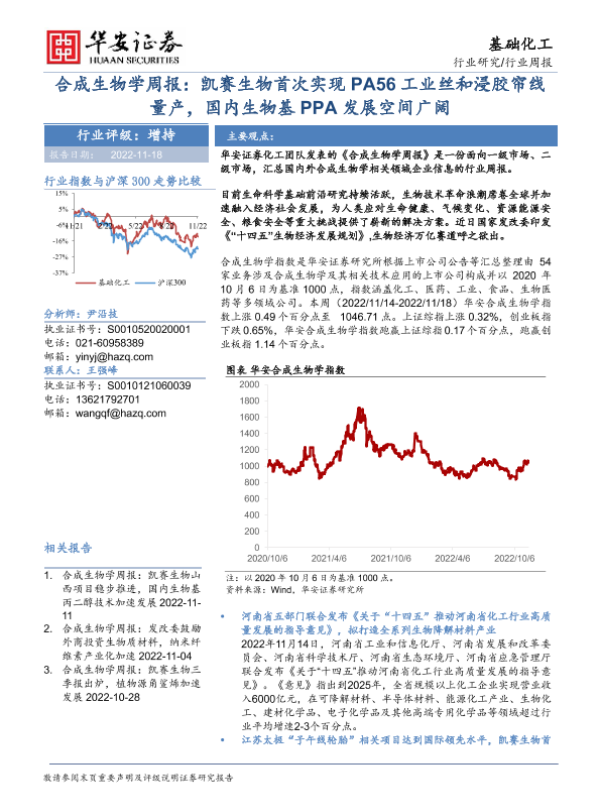 【华安证券】【20221118】基础化工:合成生物学周报:凯赛生物首次实现PA56工业丝和浸胶帘线量产,国内生物基PPA发展空间广阔-24页