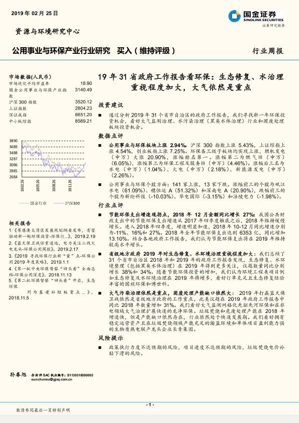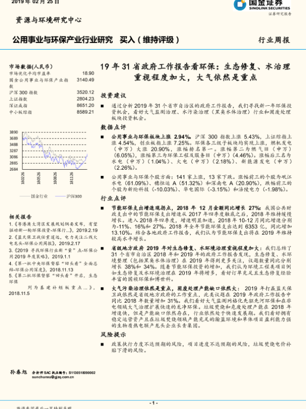 【国金证券】【20190225】19年31省政府工作报告看环保:生态修复、水治理重视程度加大,大气依然是重点-12页