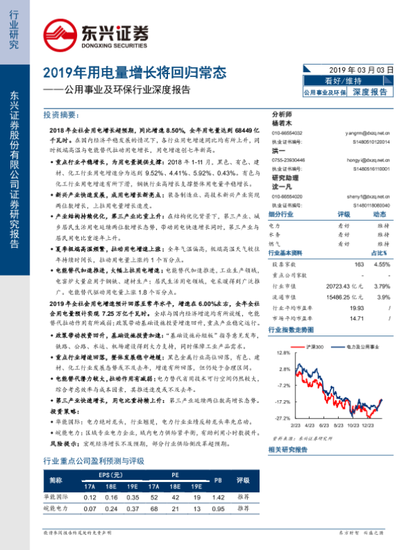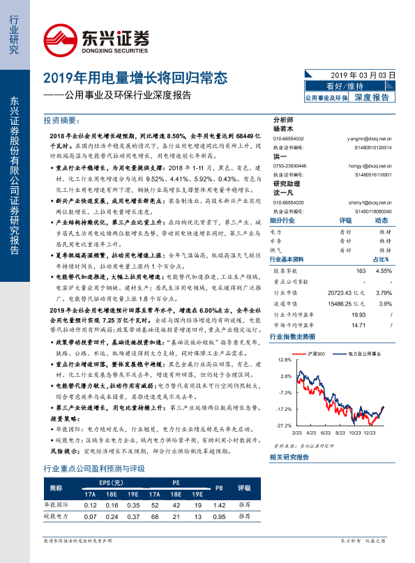 【东兴证券】【20190303】2019年用电量增长将回归常态-26页
