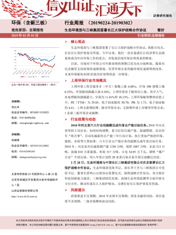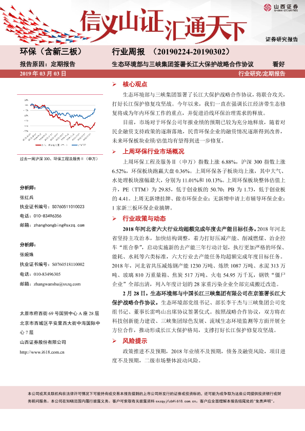 【山西证券】【20190303】环保(含新三板)行业周报:生态环境部与三峡集团签署长江大保护战略合作协议-14页
