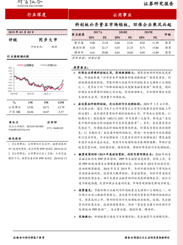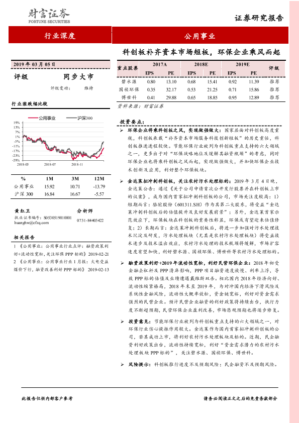 【财信证券】【20190305】公用事业行业深度:科创板补齐资本市场短板,环保企业乘风而起-18页