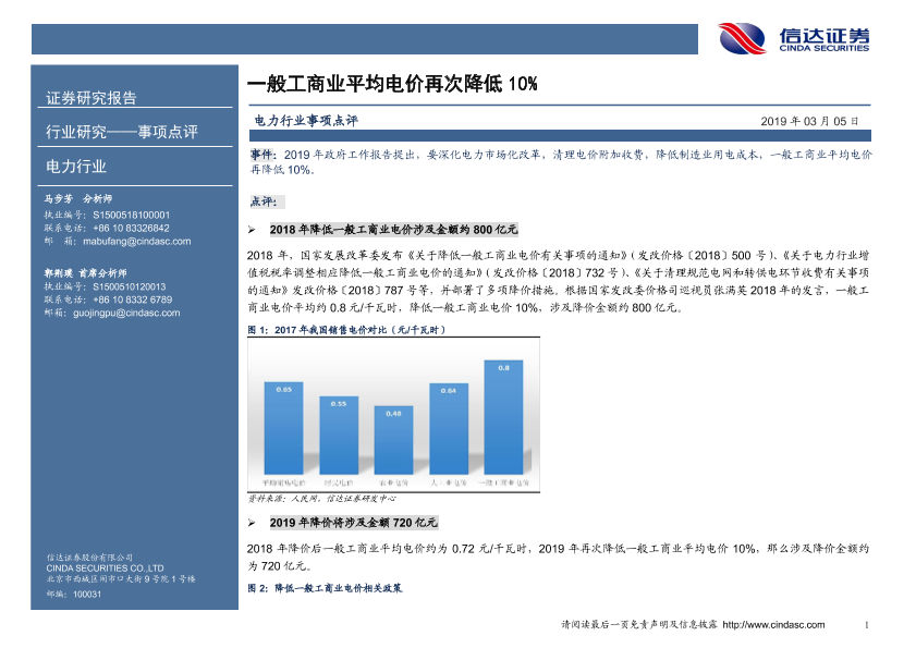 【信达证券】【20190305】电力行业事项点评:一般工商业平均电价再次降低10%-5页