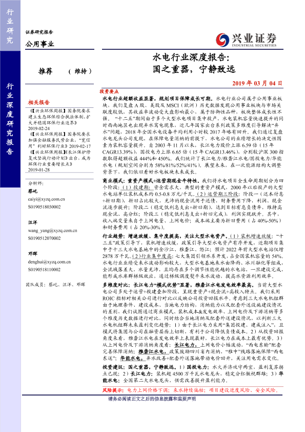 【兴业证券】【20190304】水电行业深度报告:国之重器,宁静致远-52页